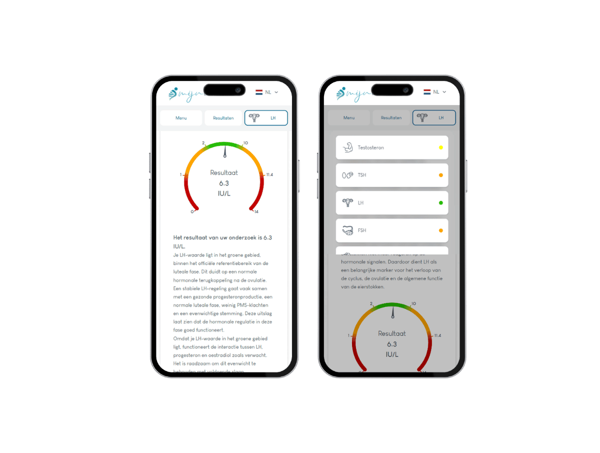 Je ontvangt een duidelijk en persoonlijk rapport waarin jouw hormoonwaarden helder worden uitgelegd in relatie tot PCOS. Dankzij een overzichtelijke kleurenbalk (rood – oranje – geel – groen) zie je direct hoe jouw waarden zich verhouden tot het referentiebereik.