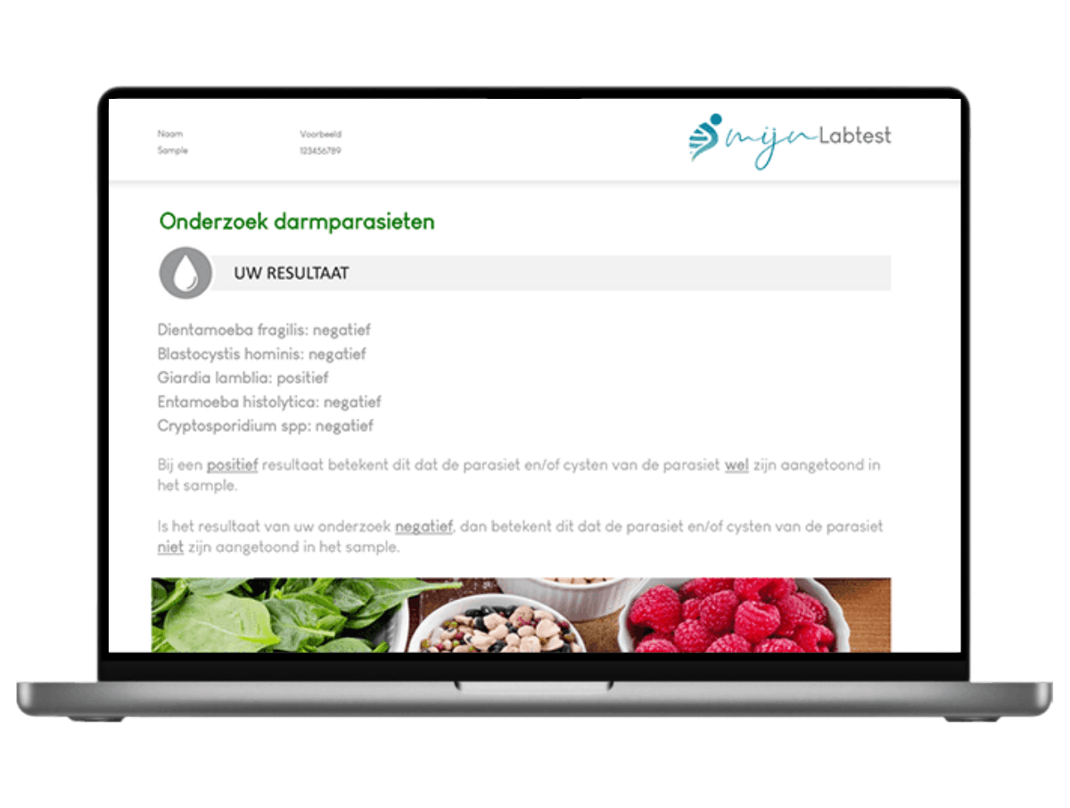 Na het afnemen van je sample met onze speciale ontlasting vanger krijg je via een beveiligd bericht je uitslag toegestuurd. In dit resultaat wordt aanvullende informatie gegeven over de parasiet Cryptosporidium spp, lees je of de parasiet aanwezig is of niet en wat dit betekent voor je gezondheid.