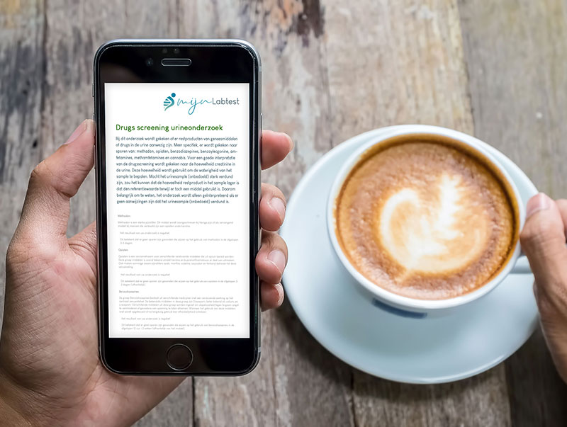 Ongeveer 6 dagen na het afnemen van de test ontvang je het resultaat via een beveiligd bericht. In dit resultaat wordt meer uitleg gegeven over de stoffen die onderdeel uitmaken van het onderzoek en lees je jouw test uitslag. Voor elk onderdeel van de test wordt aangegeven of er sprake is van een positieve of negatieve uitslag. Ook wordt aangegeven wat "positief" of "negatief" concreet betekent voor het betreffende onderdeel.