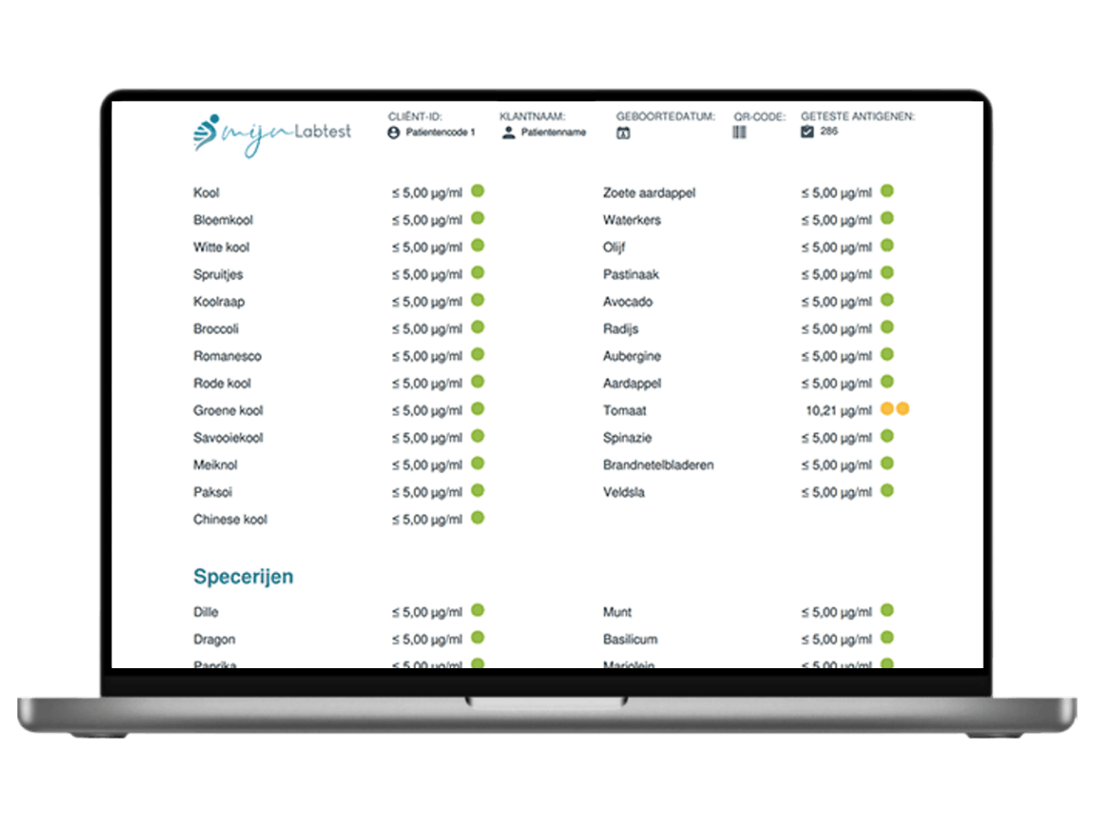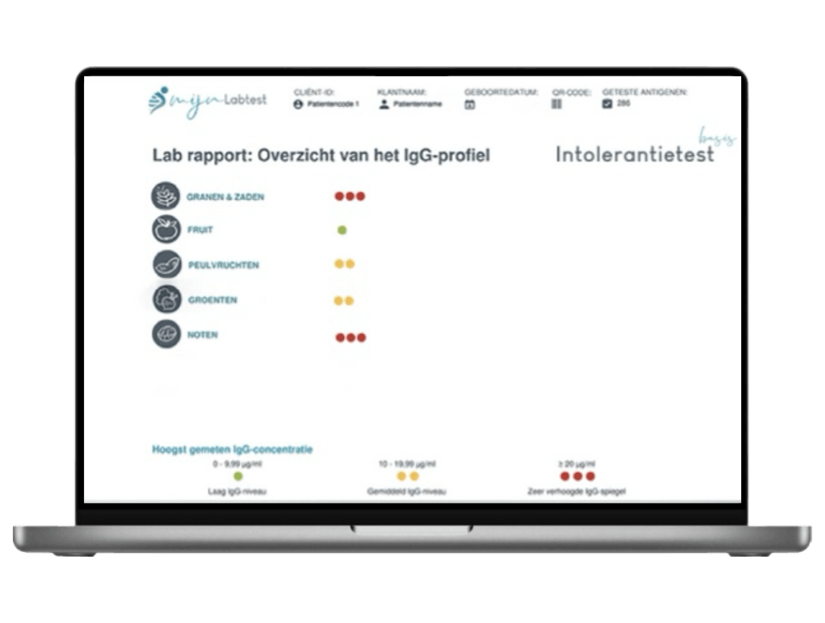 Binnen 14 dagen nadat je jouw sample hebt teruggestuurd krijg je van ons een overzichtelijk rapport. Met kleurtjes wordt aangegeven welke voedingsmiddelen voor jou verstorend kunnen werken.
