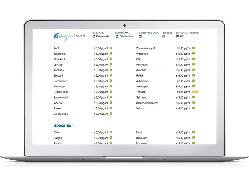 Binnen 14 dagen nadat je jouw sample hebt teruggestuurd krijg je van ons een overzichtelijk rapport. Met kleurtjes wordt aangegeven welke voedingsmiddelen voor jou verstorend kunnen werken.