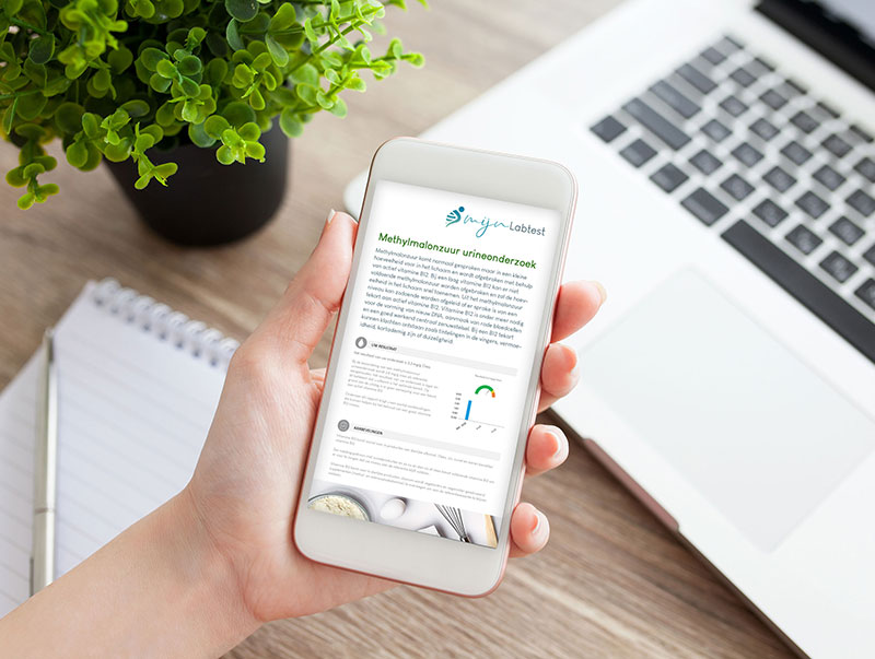 Binnen 10 dagen na het afnemen en retour sturen van de methylmalonzuur test, ontvang je het resultaat via een beveiligd bericht. Het resultaat bestaat uit twee onderdelen. In het eerste deel staat beschreven wat methylmalonzuur precies is, lees je jouw testuitslag en wordt uitgelegd wat de testuitslag betekent voor je gezondheid.