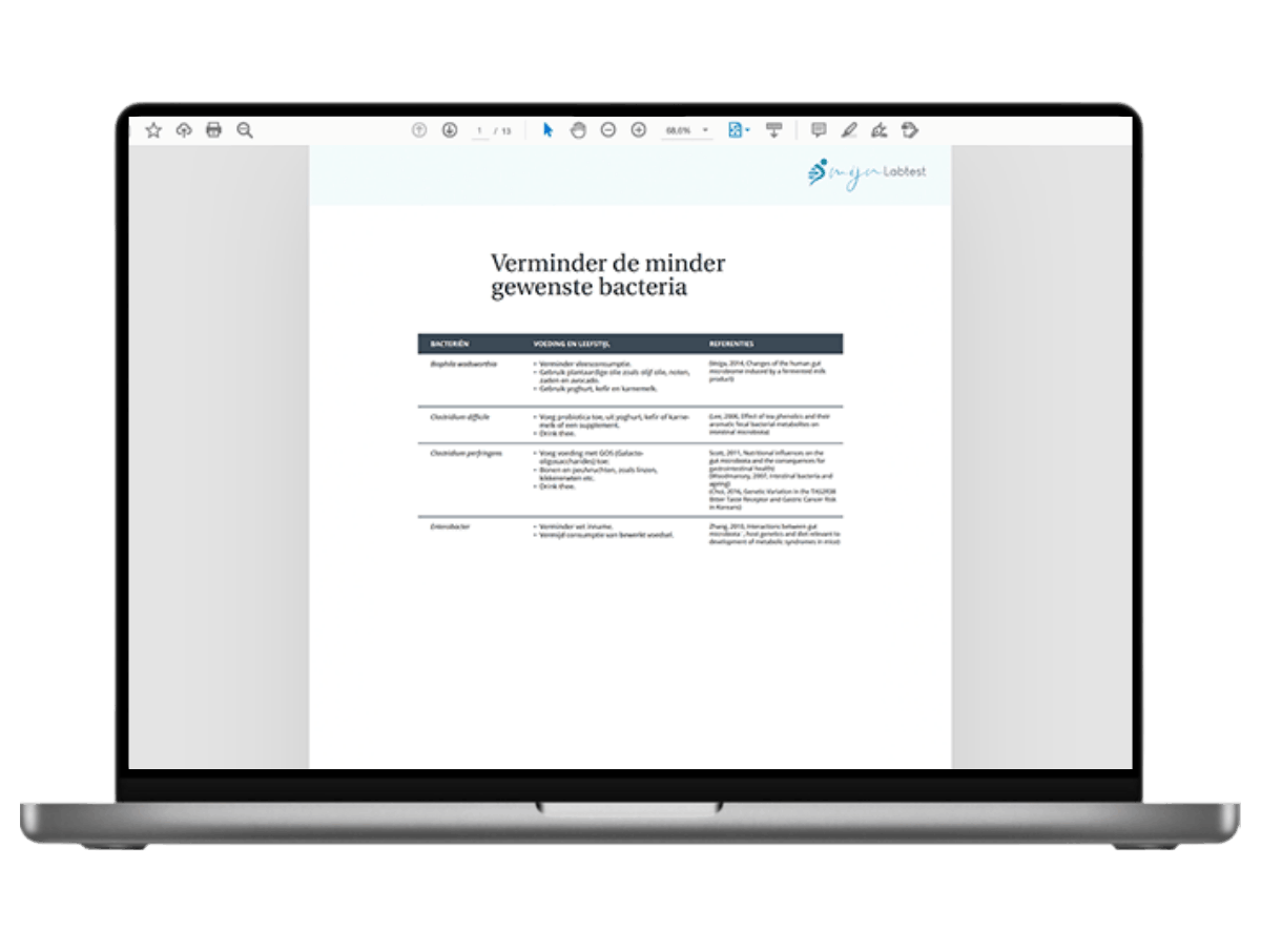 - Op basis van het onderzoeksresultaat krijg je persoonlijke leefstijltips voor het verbeteren van je darmgezondheid