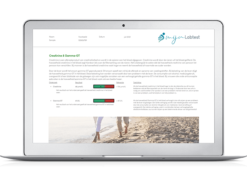 Na het afnemen en retourneren van eigen samengestelde pick & mix bloedtest test ontvang je het resultaat via een beveiligd bericht. In dit resultaat wordt aanvullende informatie gegeven over de door jouw gekozen bloedwaarden. je krijgt meer uitleg waar de testuitslag precies voor staat. Daarnaast zie je duidelijk aan de hand van een kleuren overzicht of je in het groene of rode bereik zit, hierdoor begrijp je wat de uitslag voor jou betekent.