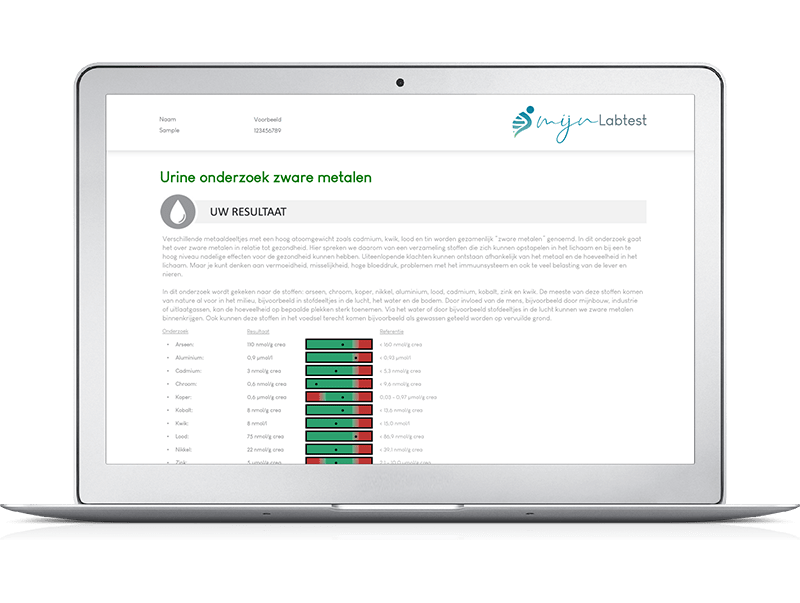 Na het afnemen en retourneren van je eigen samengestelde pick & mix urinetest ontvang je het resultaat via een beveiligd bericht. In dit resultaat wordt aanvullende informatie gegeven over de door jouw gekozen waarden. je krijgt meer uitleg waar de testuitslag precies voor staat. Daarnaast zie je duidelijk aan de hand van een kleuren overzicht of je in het groene of rode bereik zit, hierdoor begrijp je wat de uitslag voor jou betekent.