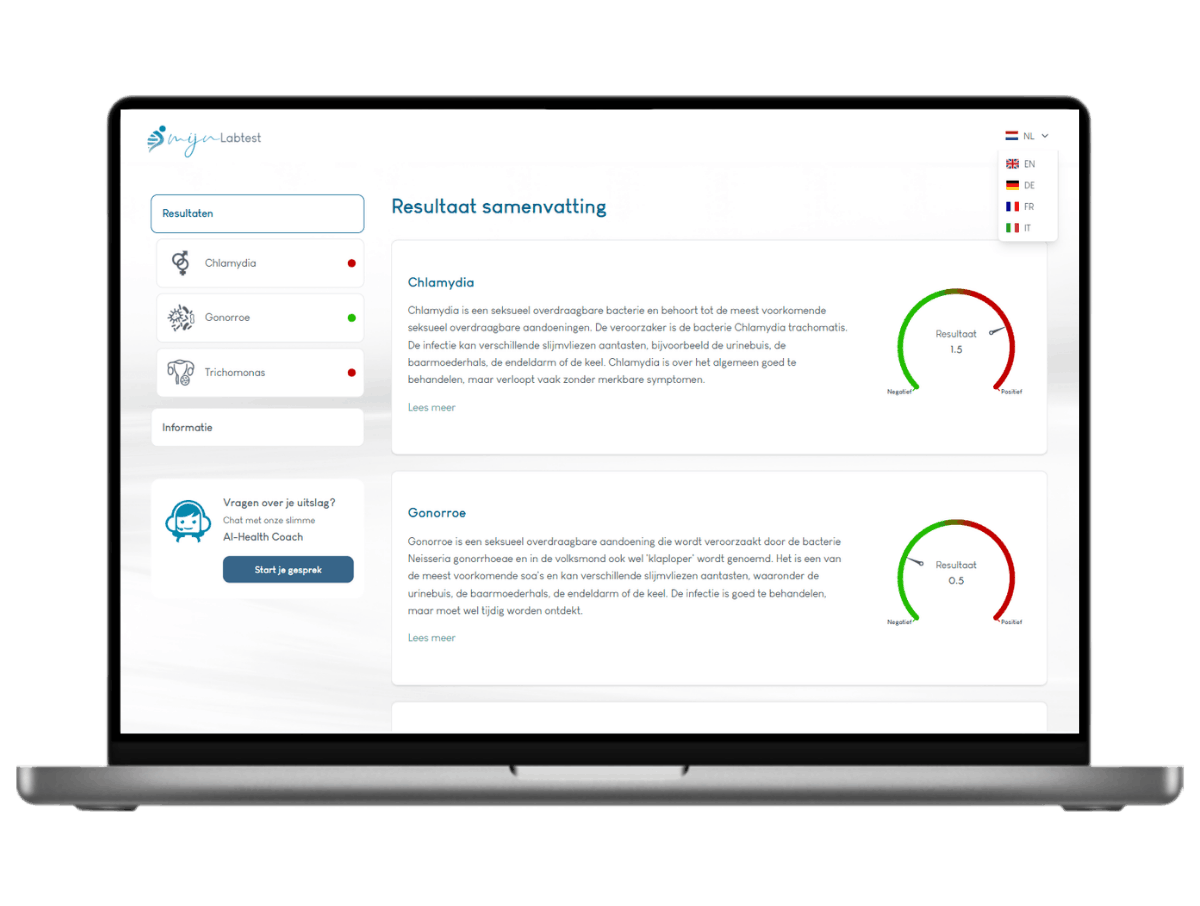 Na een test is het fijn om snel duidelijkheid te hebben. We sturen je het resultaat na 5 werkdagen via een beveiligd bericht. Jouw gegevens zijn zo goed beschermd.